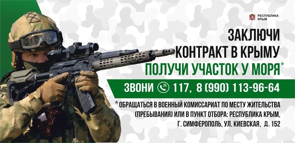 По всем вопросам необходимо обращаться в пункт отбора на военную службу по контракту: Симферополь, ул. Киевская, 152. Телефон для справок: 117, 8 (3652) 66 85 71, +7 (990) 113-96-64. Больше информации на Портале Правительства Крыма по ссылке: rk.gov.ru/structure/.... 2SDnjdJus6m