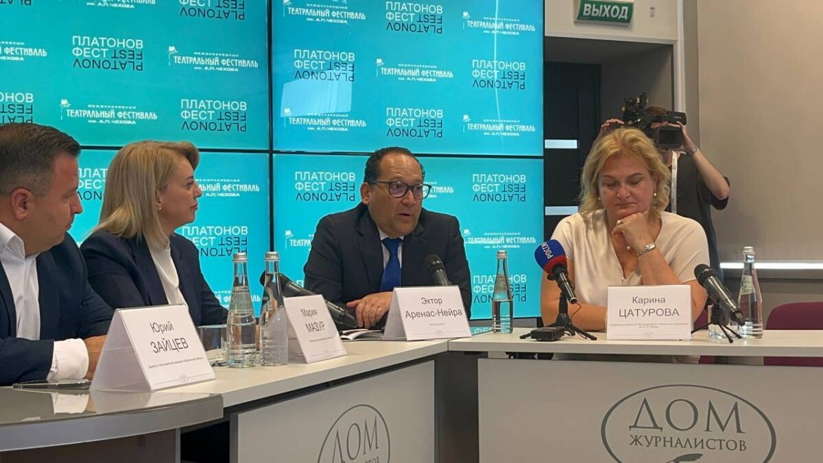 В воронежском Доме Журналистов сегодня прошла пресс-конференция, посвященная международной программе XIV Платоновского фестиваля искусств. Больше, конечно же, она была посвящена предстоящему спектаклю "Полковнику никто не пишет" (16+) от колумбийского театра искусств. В связи с этим Воронеж посетил посол Колумбии в РФ Эктор Аренас Нейра. Разговор с журналистами посол начал с благодарностей за то, как хорошо в Воронежской области принимают иностранных гостей. Особенно Эктор отметил теплую встречу с губернатором, которая прошла перед пресс-конференцией. - Я очень рад сегодня быть гостем пресс-конференции. Я впервые в Воронеже, в вашем замечательном городе. Я хочу выразить большую благодарность губернатору Александру Викторовичу Гусеву за приглашение и за теплый прием, - отметил посол. Эрман отметил также, что для него честь быть в Воронеже вместе с такими большими актерами как Хермано Харамильо и другими членами актерской труппы, которым предстоит показать воронежцам спектакль "Полковник