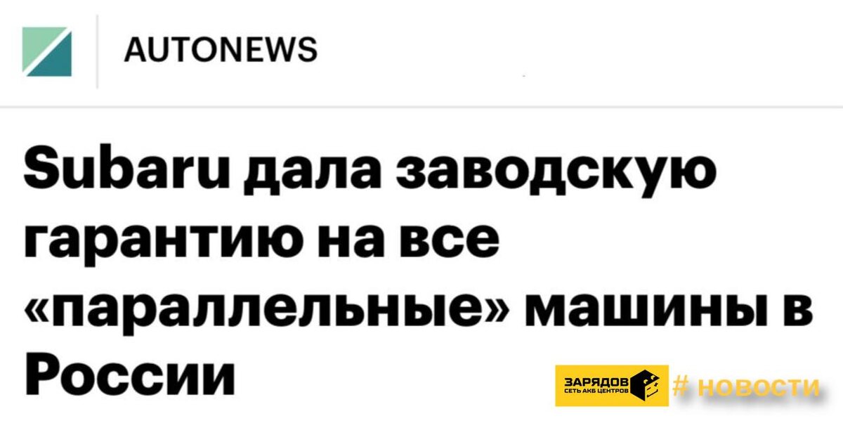 Subaru даёт 3 года заводской гарантии на машины, которые ввезли по параллельному импорту, заявили в представительстве марки. Там рассказали, что обслуживание доступно во всех официальных дилерских центрах Subaru: Мы никуда и не уходили. Мы в полном объеме продолжаем поддерживать обслуживание автомобилей Subaru в России и Республике Беларусь. Единственный нюанс — с поставкой некоторых запчастей возможны задержки из-за логистики.