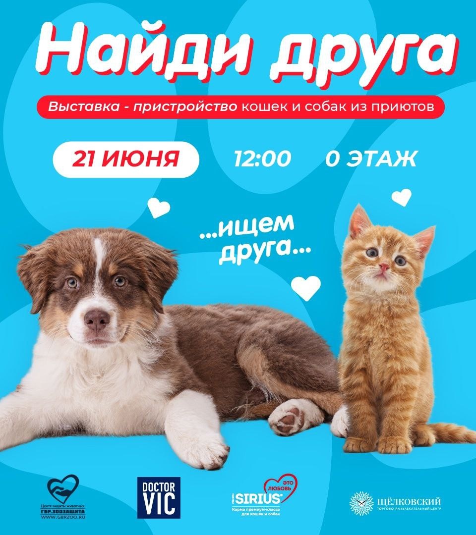 Москва. Московская область. Организатор выставок «Найди друга», Центр защиты животных АНО «ГБР.Зоозащита» приглашает вас на благотворительное, семейное мероприятие 👉выставку - пристройство кошек, котят, щенков и собачек из приютов - «Найди друга» 🥳 Самые красивые, добрые, умные, социализированные кошки, котята, щенки и собачки 🐱🐶будут ждать своих хозяев на выставке в субботу, 21 июня! Все животные здоровы, привиты, прошли ветеринарный контроль и готовы ехать домой ❤(не забудьте свой паспорт) ✅Вход бесплатный. Отдаём котят, щенков, кошек и собачек из приютов в добрые руки бесплатно. ВАЖНО Если вы пока не готовы взять пушистого питомца в дом, вы можете принести мягким лапкам вкусные подарки 🎁, корма, лежанки, игрушки или помочь финансово! В зоне выставки вы найдете корзину добра и копилки. Все средства пойдут на помощь животным из приютов. Хорошее настроение 👌, море позитива и теплые эмоции от общения с добрейшими котиками и пёсиками гарантированы 🤗 Приходите всей семьëй. Для дете