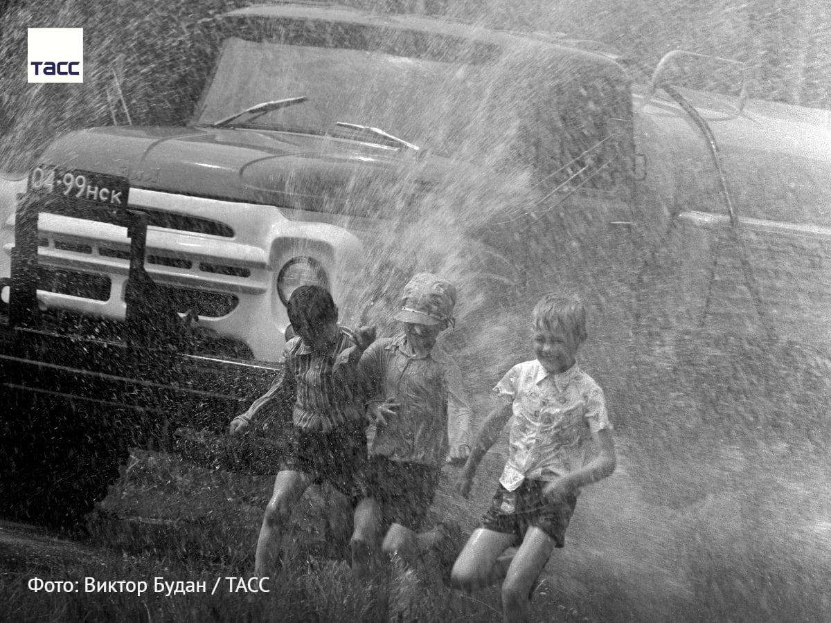 Юные жители Академгородка весело проводят время в жаркий день. Фото Виктора Будана, ТАСС, 1978 год