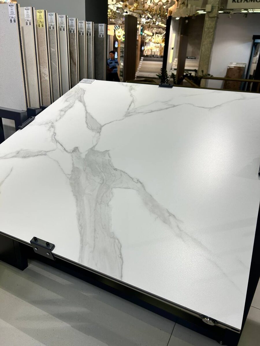 Достойный представитель матового керамогранита — имитация под серый мрамор с прожилками из коллекции Techno Matt в магазине Neodom в ТЦ «Миллион Мелочей». Премиальная эстетика, но без агрессивной броскости.