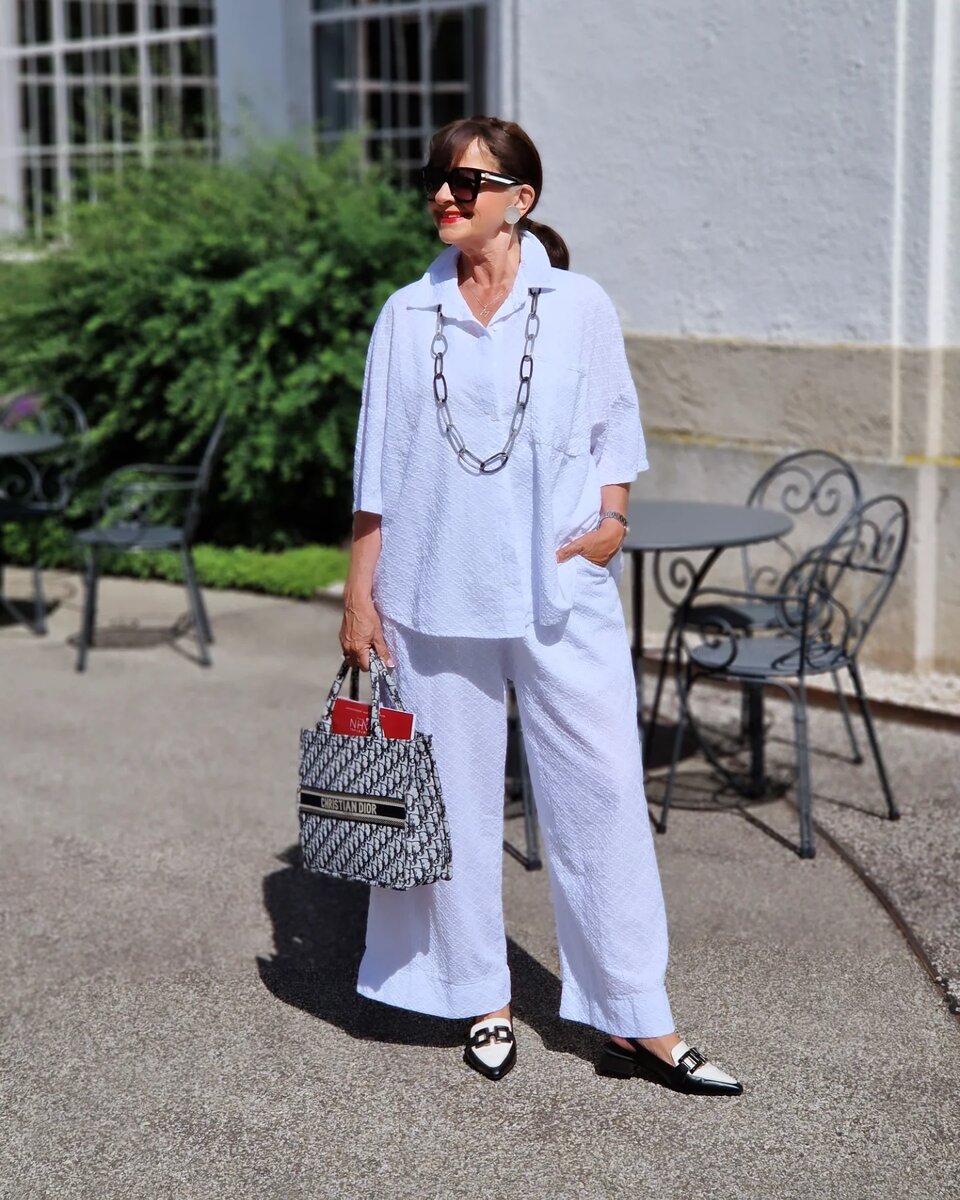Кто сказал, что возраст диктует правила стиля? Эти 6 вещей, созданы для того, чтобы их носили именно вы – элегантная леди 50+, которая ценит комфорт, женственность и актуальные тренды. Ниже готовые идеи на текущий летний сезон! С брючным костюмом проще всего составить стильный образ. Достаточно подобрать подходящие дополнения и готово! Если речь идет о повседневном наряде, то его целесообразно завершить удобной обувью на низком ходу. В теплое время года на первый план выходят белоснежные платья. Выбирайте фасон, в котором вы будете чувствовать себя максимально уверенно. Для теплой погоды идеально подойдет свободное платье, талию при желании можно выделить с помощью контрастного пояса. Костюмный жилет легко адаптируется под любой стиль: официально-деловой, повседневный, вечерний. Не хуже жилет смотрится в составе костюма. Свободный крой не стесняет движений, ахроматический белый цвет красиво оттеняет загар. Лучше всего приобрести однотонную футболку, без лишнего декора, который может пе