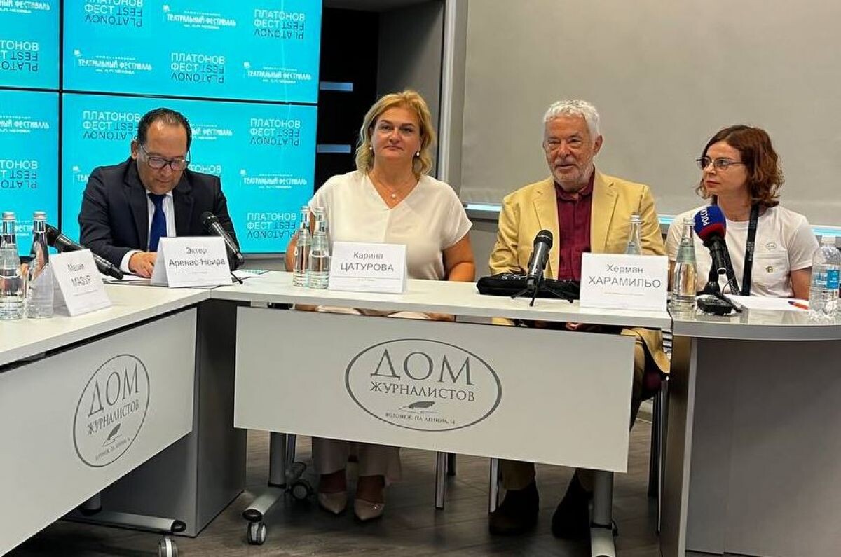 Режиссер спектакля Хорхе Али Триана не смог присутствовать на пресс-конференции. От его имени гостей мероприятия приветствовал Херман Харамильо – актер театра и кино из Колумбии, исполняющий роль полковника в спектакле.