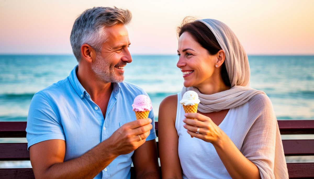 Каждый выбирает сам. Андрей берёт пломбир — явно с оглядкой на детство, Лена — клубничный лёд. Я — шоколадный рожок, потому что он всегда казался праздником. А Нина, взяв мороженое, секунду смотрит на него, потом быстрым движением снимает обёртку — и, кажется, впервые за долгое время улыбается искренне и широко.