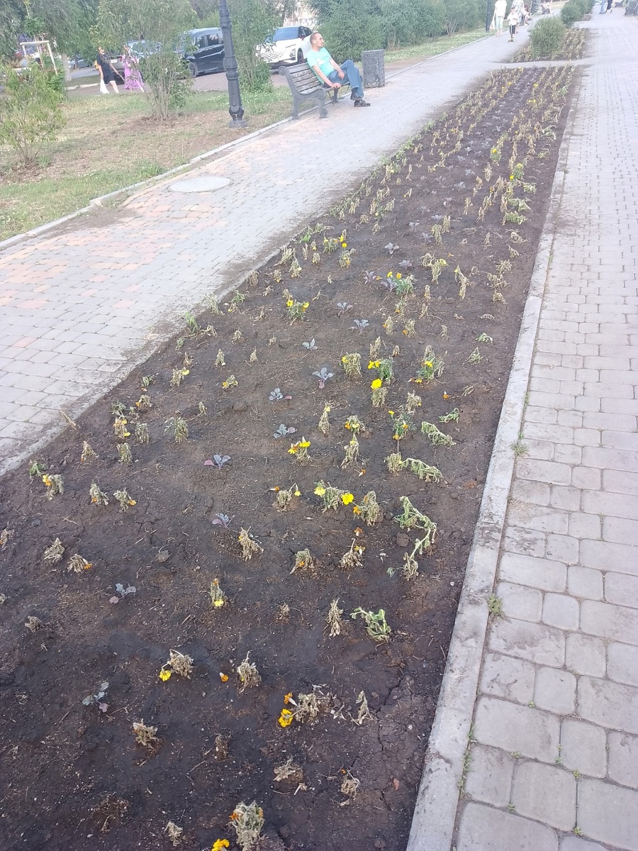 Анонимно. В парке Лебедева и Сураева, где недавно наш вице губернатор сажал цветы, 4 клумбы погибло, такое ощущение, что ничего не поливали, все сгорело. Ценят у нас чужой труд