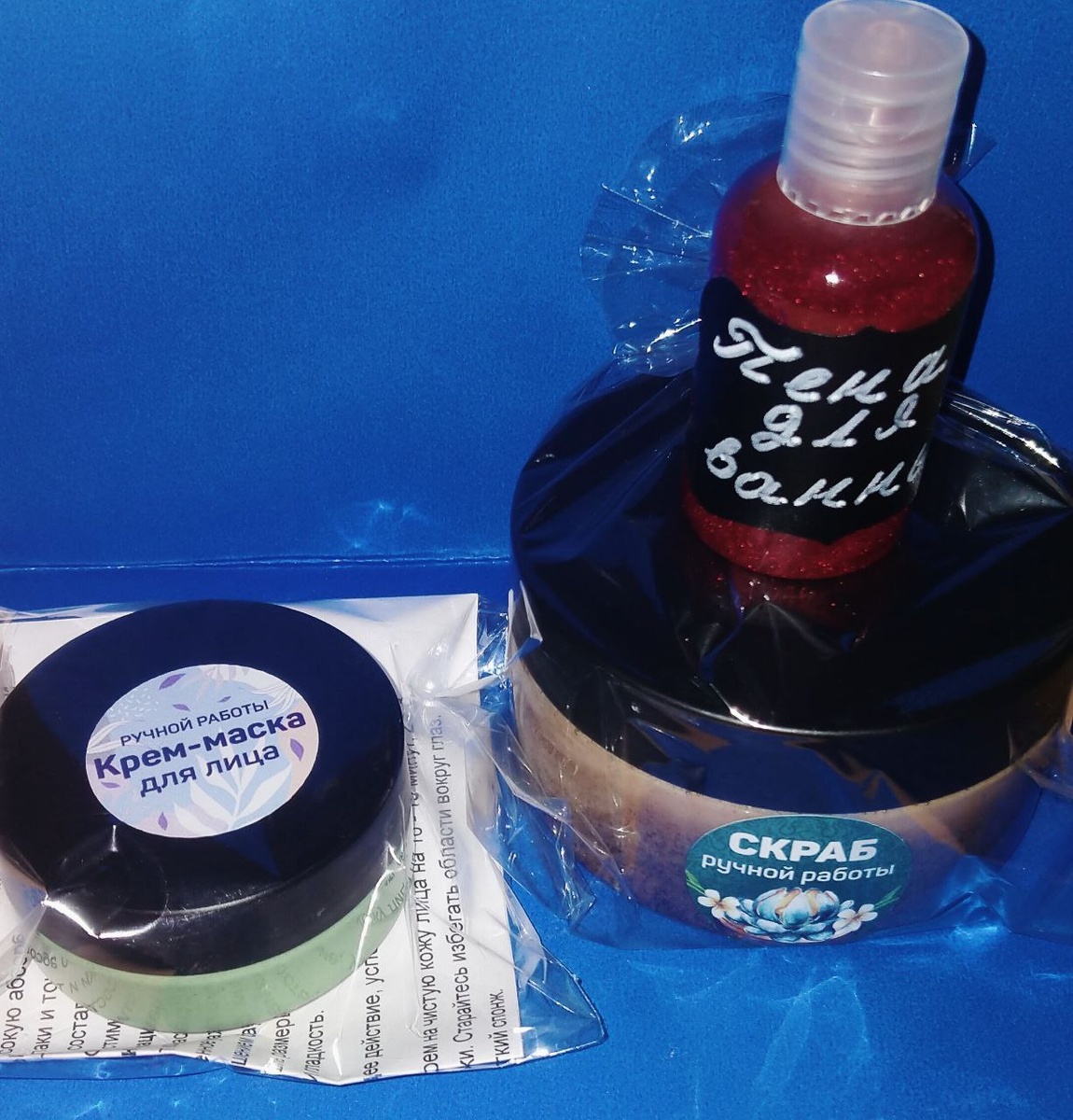 Желаю всем тепла и хорошего настроения! Моя дорогая подруга Екатерина приготовила для своих близких и друзей необычный подарочный набор. Вот что в него вошло: - Крем-маска для лица с голубой глиной и водорослями. - Кофейный скраб-мусс. - И новинка — пена для ванны с шиммером и ароматом малины!🍓 Вы тоже можете порадовать себя и своих родных и близких оригинальными подарками!