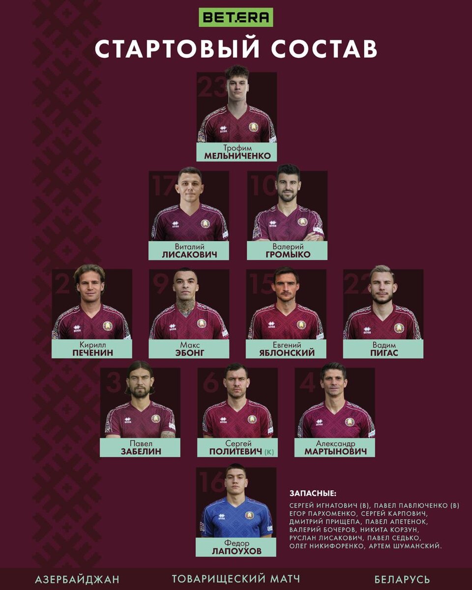 Стартовый состав сборной Беларуси на товарищеский матч против сборной России