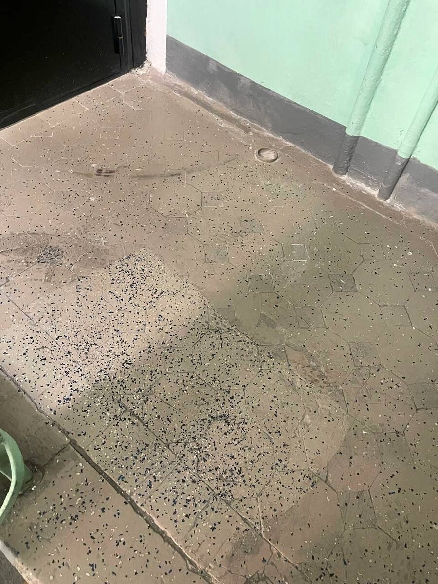 Некоторое время назад мы писали, что при ремонте подъезда в доме на Тверской, 27, рабочие взяли и закрасили метлахскую плитку. Несмотря на возмущения жильцов, ссылались на указание сверху и говорили, это надежно и долговечно. Прошло полгода и весь пол покрылся разводами от обуви, где-то проступила старая плитка. Ну никак не похоже, что делали ремонт и наводили чистоту