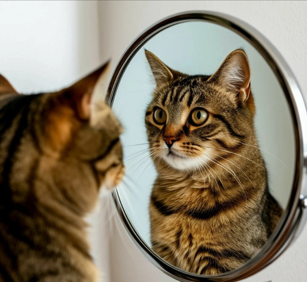 Почему так? Кошки и собаки живут в мире запахов и звуков гораздо больше, чем в визуальном. Для них зеркало — просто странный объект, который иногда показывает другое животное. Со временем они привыкают и перестают реагировать, но не потому, что осозали себя, а потому, что поняли: этот "чужак" не пахнет, не двигается по-настоящему и вообще безопасен.