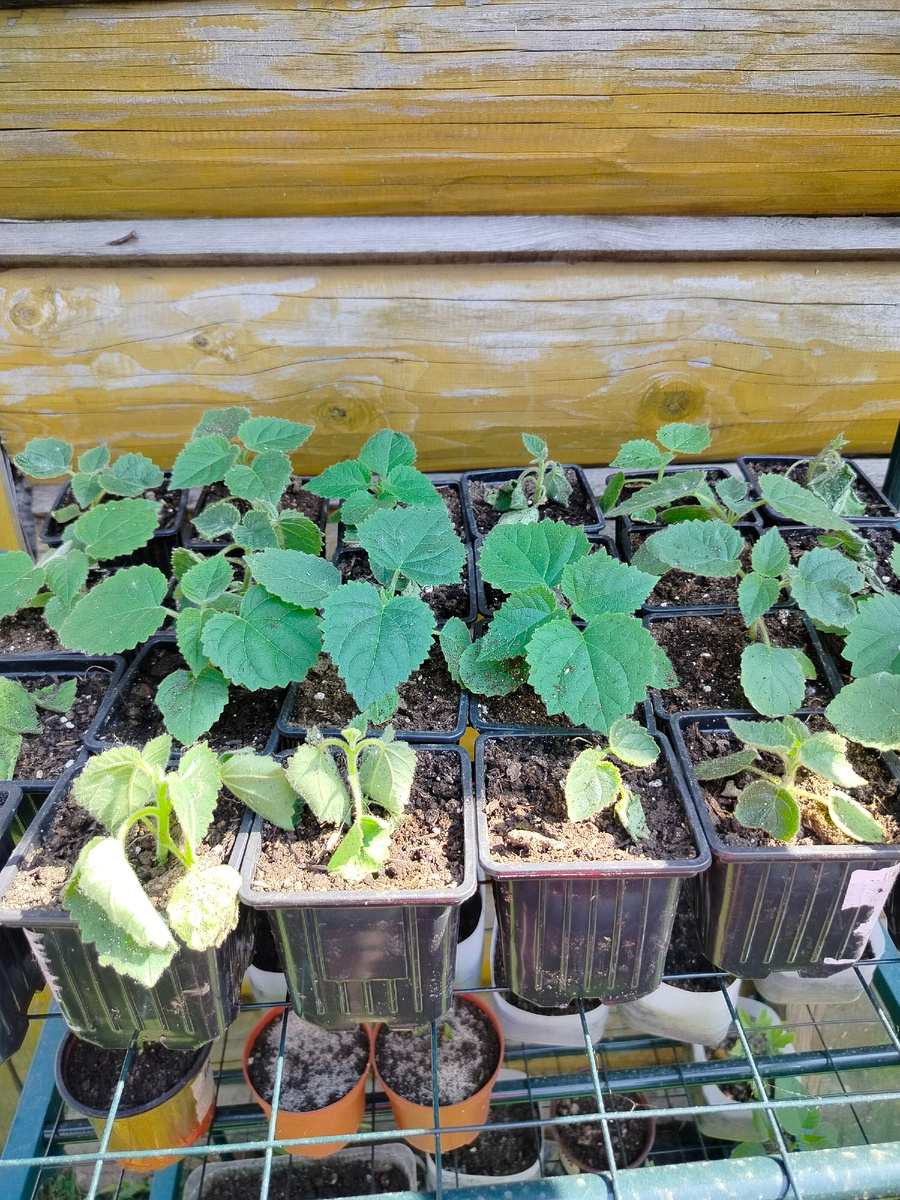 Здравствуйте, уважаемые гости "Ранчо "Джек и компания". Добралась я всё-таки до павловний и пересадила их в горшочки побольше. Пересадила все, которые подавали признаки жизни. Получилось у меня 25 штук. Что я буду делать с двадцатьюпятью саженцами павловний, понятия не имею. Павловния - довольно большое дерево. И даже на нашем участке можно посадить только одну, если, конечно, мы хотим еще что-то кроме павловний вырастить. Ну ладно. Думаю, придумаю, как с ними быть. Я же собиралась выращивать саженцы и продавать. Вот и начну с экзотических деревьев. В крайнем случае посажу на нашу парковую зону, которую начали вроде как обустраивать под руководством депутата. Кроме павловний у меня есть еще и другие деревья, которые обычно не сажают у нас в Ижевске. Например, катальпа прекрасная. Еще гингко билоба. А также багрянник канадский Сиел (церсис). Эти деревья я вырастила из семян, которые купила на маркетплейсе. Если есть среди вас знающие люди, кто скажет, что это никакая ни катальпа, ни г