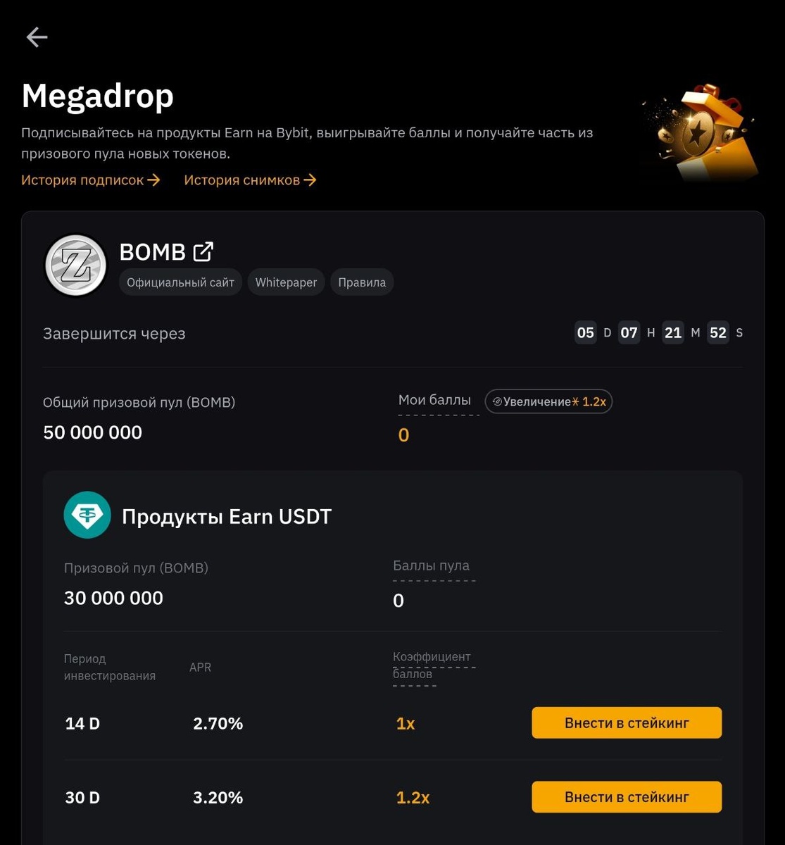Раздача от BYBIT🔥 Уже не новый формат стейкинг-лаунчпула. За который помимо APR нам дают баллы, которые мы можем обменивать на токены ДО листинга🧐 Что делать? 1. Идем сюда 2. Стейкаем USDT/MNT 3. Копим баллы и меняем их на токены 4. Продаем полученные токены = профит Как и всегда показываю скрины своего участия! (см.скрин 2) P.S С прошлой акции мне удалось вынести 83$ (помимо APR) #airdrop