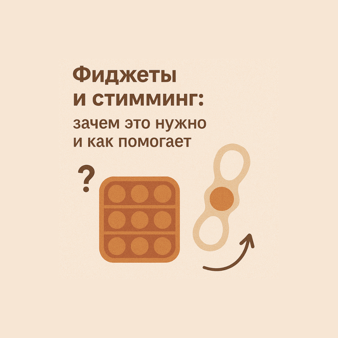 Почему кто-то постоянно щёлкает ручкой, крутит кольцо или теребит свои волосы? Часто это не просто привычка, а способ справиться с тревогой, сенсорной перегрузкой или сосредоточиться. Это называется стиммингом, он особенно важен для нейроотличных людей. Что такое стимминг? Стимминг (от англ. self-stimulating behavior - самостимулирующее поведение) — это повторяющееся действие, которое помогает регулировать внутреннее состояние: - успокаивает - возвращает контроль - помогает сосредоточиться - снижает сенсорную или эмоциональную перегрузку Это может быть что угодно: качание ногой, постукивание пальцами или кручение резинки для волос. А фиджеты тут при чём? Фиджеты — это специальные предметы, которые можно использовать для стимминга: - кольца-антистресс - спиннеры - шарики и кубики с кнопками - сквиши и слаймы - текстильные игрушки с разными фактурами Они дают безопасный, социально приемлемый способ снимать напряжение. Особенно полезны в школах, офисах, транспорте — там, где нельзя уйти и