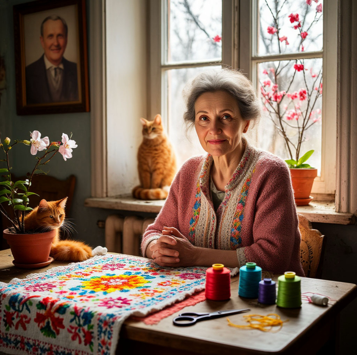Каждое утро теперь имело смысл. Простая рутина вдруг наполнилась прежней молодостью: кофе в маленькой чашке, тёплый свет утреннего окна, шелест ножниц, радость редких удачных стежков… Маруся, кошка-ветеран, следила за ней из-под края кресла и время от времени с укором мяукала, будто напоминая: — Жизнь не окончена, хозяйка. Зачем иначе швейная коробка?
