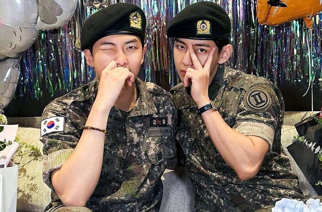 Два Кима - Намджун и Тэхён, с творчеством которых я решила познакомиться - таки относительно недавно, когда они уже были на службе, вышли на свободу) Отслужили, возмужали и похорошели. Перевод новостной статьи: Завершая долгожданную главу, участниуи БТС - RM и V официально завершили свою обязательную военную службу и были демобилизованы утром 10 июня (по корейскому времени).