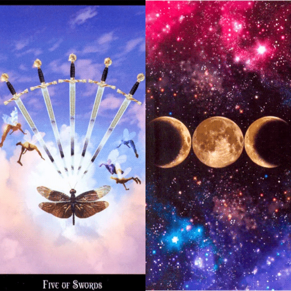 В гадании пятёрка мечей служит сигналом, что вы чувствуете себя униженно и смущённо.