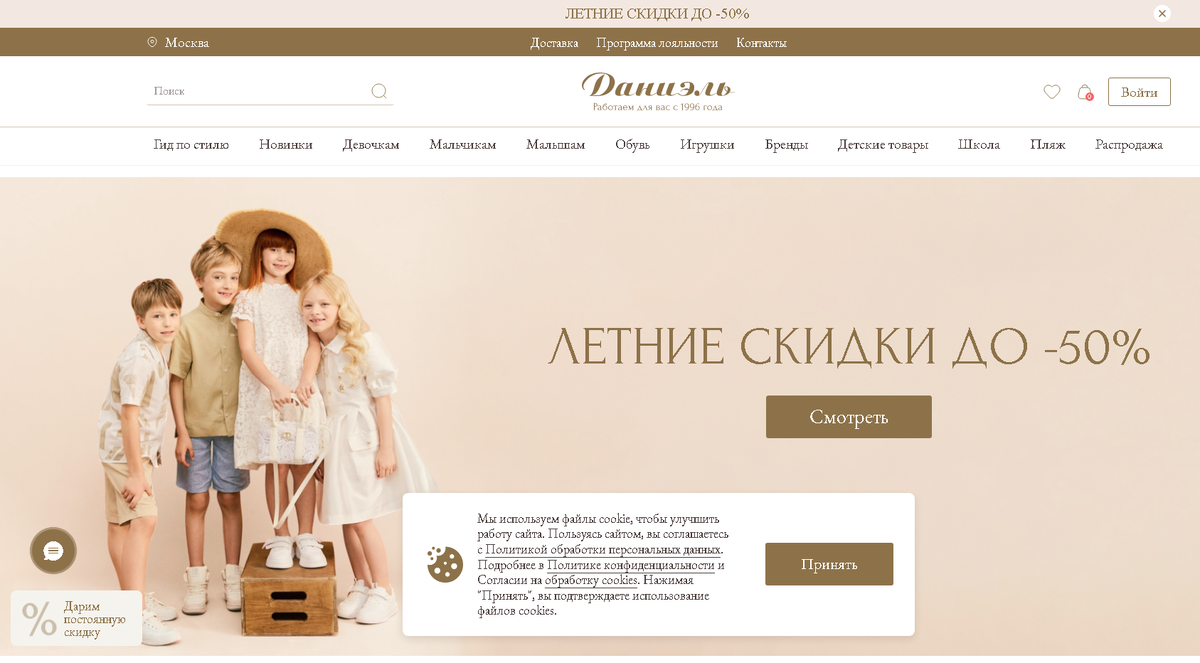 Личный кабинет в интернет-магазине детской одежды Даниэль Бутик