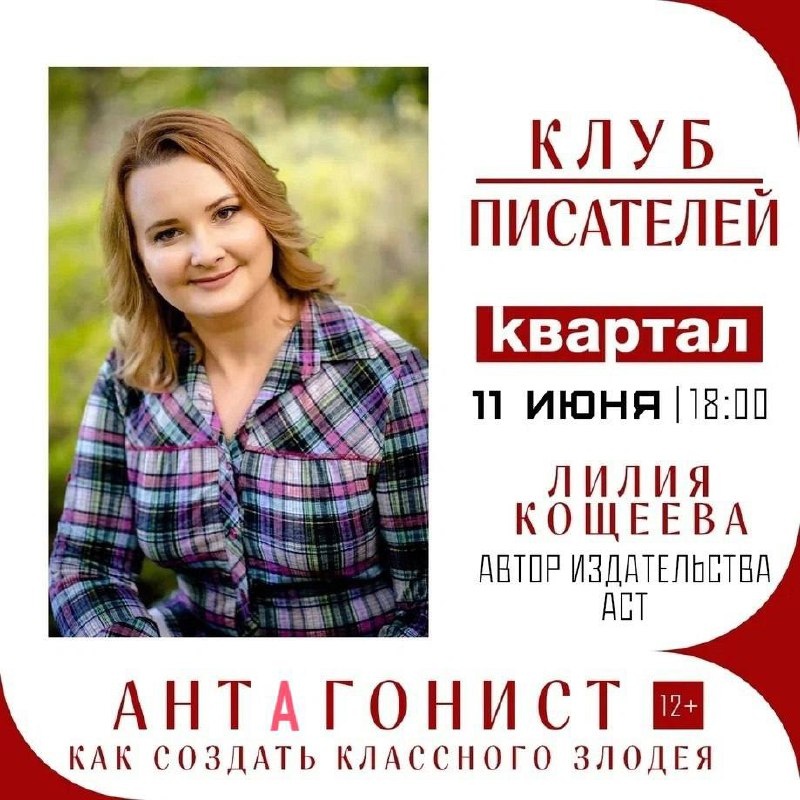 Четвёртое собрание "Клуба писателей" Обсудят тему: "Антагонист. Как создать классного злодея" 🗓️ 11 июня, 18.00 📍Квартал, Ленина 78 Разберёмся в понятии "антагонист": - всегда ли нужен антагонист и зачем; - какие типы антагонистов бывают; - разные уровни антагонистов. Обсудим, как создать крутого злодея на примере известных персонажей в истории кино и литературы. Цель собраний: - объединить авторов Ульяновска, создать творческое сообщество, взаимная поддержка и обмен опытом. Ведущая: Лилия Кощеева — преподаватель, автор издательства АСТ. Вход свободный 🏷️ #11июня25