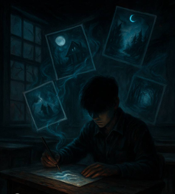 Эту историю так никто и не смог объяснить. Хотя пытались — и врачи, и педагоги, и родители. Всё началось с обычной школьной тетради. И с рисунков, которые слишком точно совпадали с чужими снами. В нашем классе учился мальчик по имени Вадим. Он был… тенью. Почти незаметным. Не дрался, не блистал, не дружил. Просто сидел за последней партой и много рисовал. Обычно — на переменах, в углу школьного двора или прямо на уроке, если учитель отвлекался. Сначала это были просто странные картинки. Кто-то в коридоре. Женщина в белом халате с лицом, закрытым волосами. Кровать в комнате, где окно прибито досками. Собаки без глаз. Мост, уходящий в никуда. Всё — в сером карандаше, с жуткой детализацией, будто нарисовано не рукой семиклассника. Мы начали замечать совпадения. Один из ребят, Дима, рассказал, что ему приснилось, будто он идёт по узкому коридору с красной лампочкой в конце. Утром Вадим подошёл и молча положил на его парту рисунок — именно этот коридор. Один в один. Потом был Славка — ему