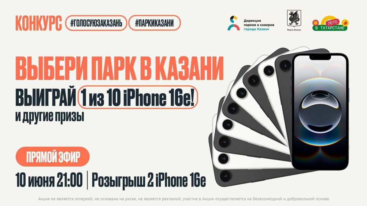 В ответ на пост 📲🔝Сегодня пройдет второй из четырех крупных розыгрышей для участников голосования за парки Казани В 21:00 в прямом эфире будут объявлены имена обладателей, которые получат два iPhone 16е и сертификат на отдых в глэмпинге для двоих. Напомним, с 9 по 12 июня Дирекция парков и скверов Казани разыгрывают десять iPhone 16е, сертификаты на отдых в глэмпинге и билеты на концерты Руки Вверх и Надежды Кадышевой. Подробные условия конкурса можно узнать здесь. @tatmediaofficial