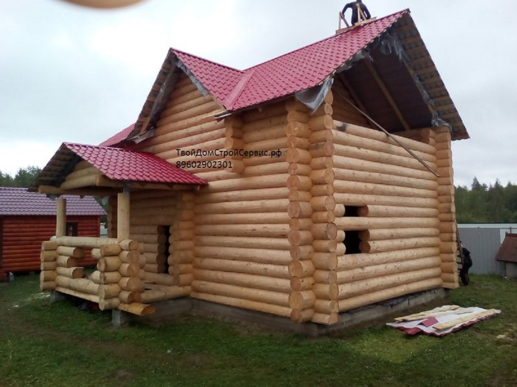 Дом из сруба 5х8 метра чаша, полтора этажа вырубки. Интересный проект дачного дома из брёвен. По своей планировке, изготовлению и сохранению по максимуму полезной площади дома из сруба. Дом из сруба 5х8 метра в чашу, изготовлен из бревен зимней заготовки, обработанных под рубанок, размер сруба указан в осях, брёвна по длине составляют 9 и 6 метра соответственно. Первый этаж дома срублен как пятистенок, верхний этаж, это рубленные стены, семь рядов и три бревенчатых фронтона. Один фронтон из бревна срублен по внешней стене сруба, а другой сдвинут от оси внешней стены во внутрь на 2.5 метра. Это нужно для устройства балкона с полным остеклением одной стороны дома. И небольшой фронтон на фасадной части дома, для оформления внешнего интерьера дома. Дом из сруба 5х8 метра чаша, комплект строительных материалов, доставка до места строительства, но не более 300 км, строительные работы из материалов указанных выше. Полная стоимость стоимость составляет 893 366 т.руб. Выполнение работ по уст