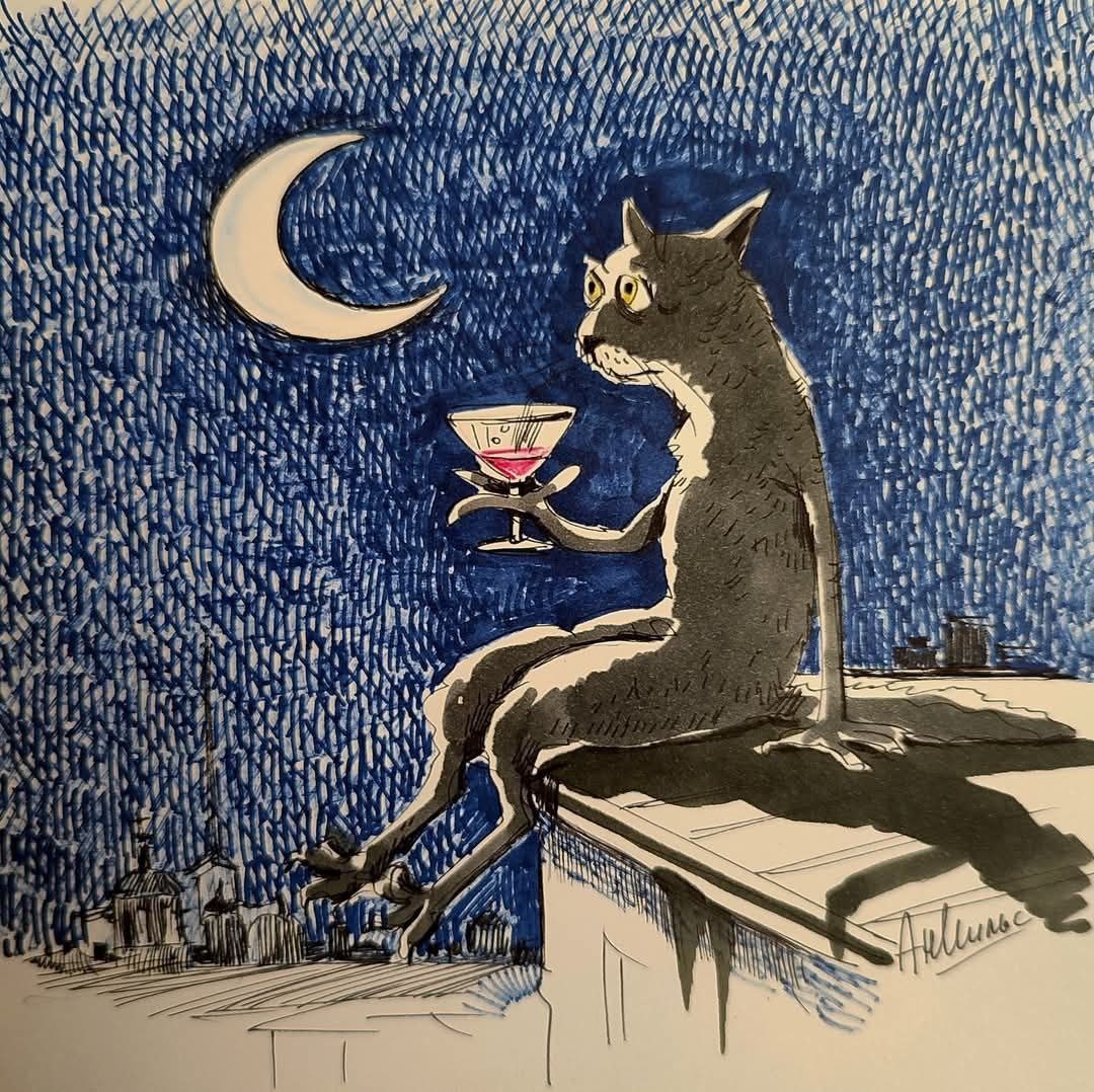 Доброй ночи!)🐾 🎨 Анастасия Нильская Кот Пикассо 🐈⬛ Искусство