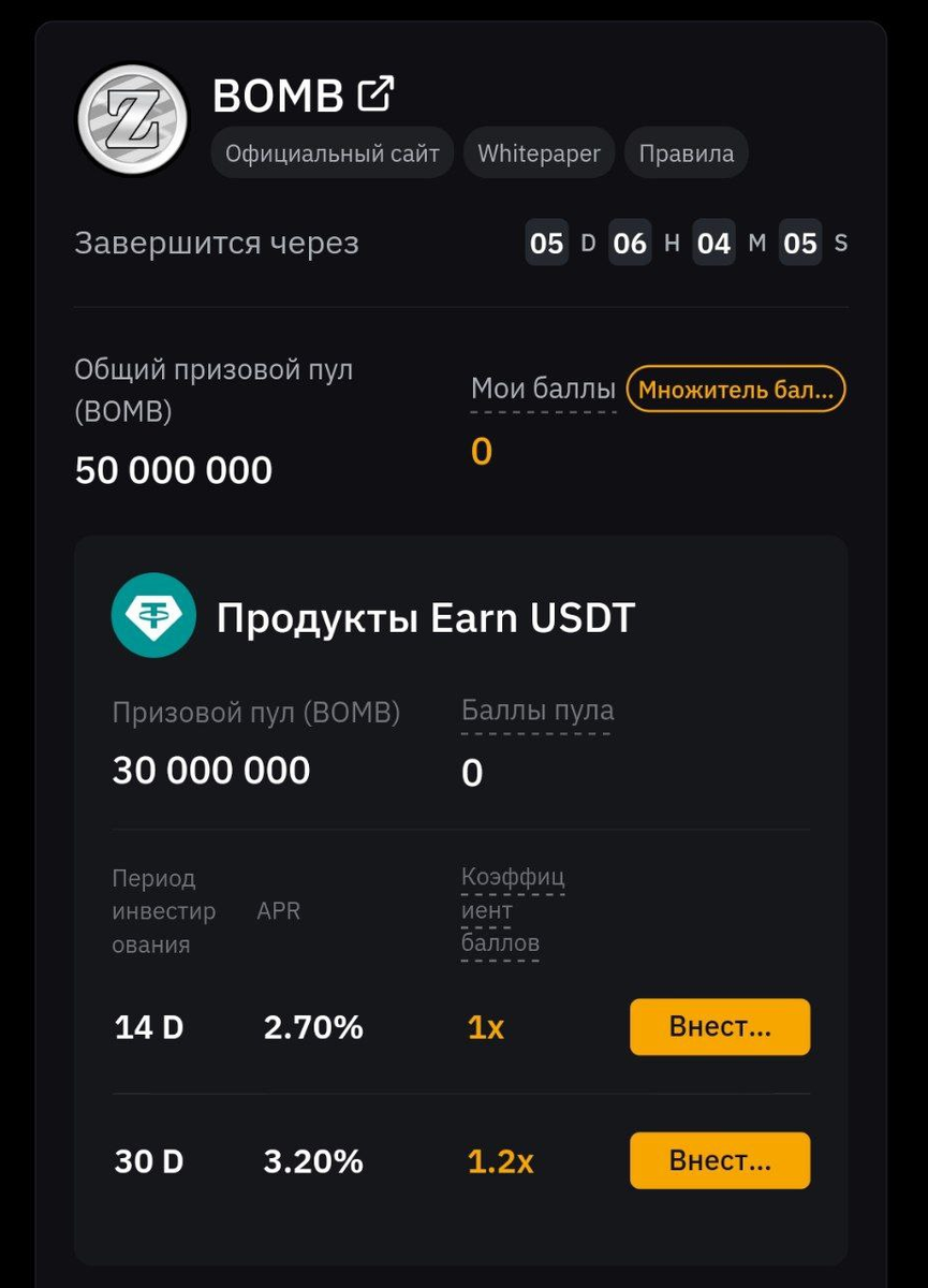 На крипто бирже Bybit вновь запустили промо-акцию Megadrop, в которой за стейкинг с фиксированным сроком и выполнением одной не сложной задачи в день, раздают 50,000,000 BOMB. О том как принять участие и получить airdrop - расскажем в этой статье, читайте до конца!