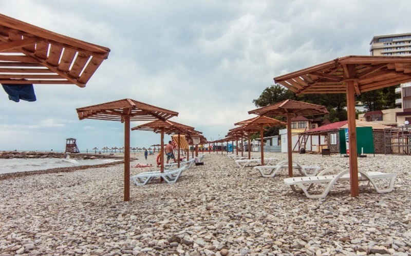 Поверхность — галька, местами есть участки с песком. Работают магазины, прокат спортинвентаря, кафе, бар и шашлычная.