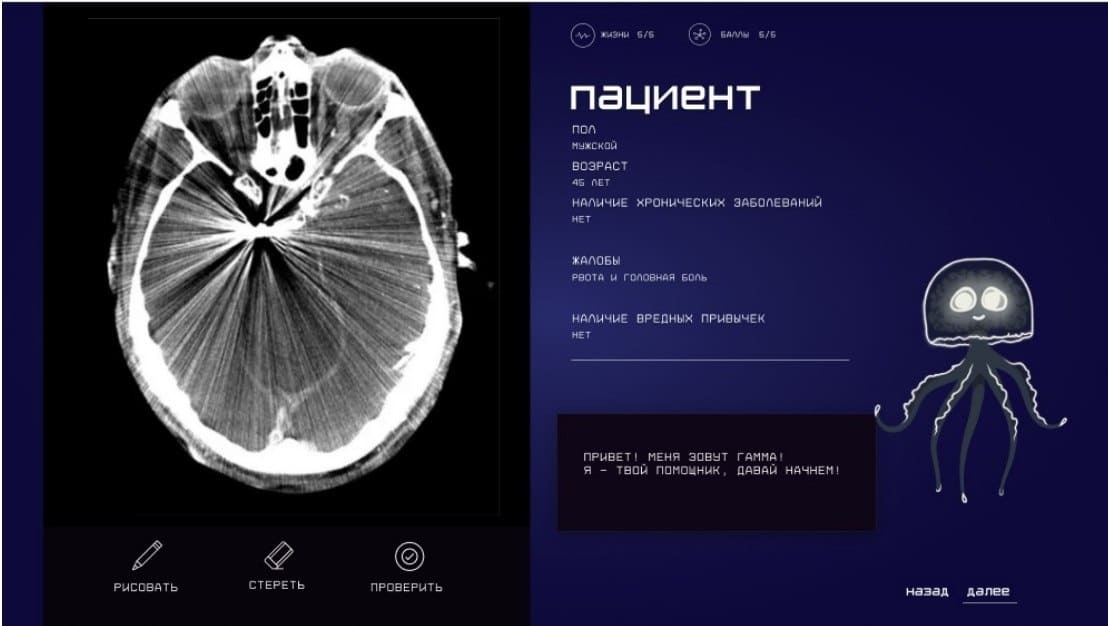 Команда молодых учёных из РТУ МИРЭА представила новый учебно-игровой симулятор Radiologist для обучения будущих врачей-рентгенологов и специалистов по компьютерной томографии. Тренажёр представляет собой уникальную систему, позволяющую отрабатывать интерпретацию медицинских изображений и получать обратную связь, что подчёркивает игровой подход к обучению. Разработанный авторами из Института искусственного интеллекта РТУ МИРЭА, симулятор революционизирует профессиональную подготовку в области визуальной медицинской диагностики, позволяя студентам приобретать знания и компетенции в игровом формате. Это отметила руководитель группы Анна Веселова. Изначально симулятор был ориентирован на патологии головного мозга, однако пользователи могут практиковаться в диагностике других заболеваний, используя материалы КТ и МРТ. По словам соавторов проекта, студентов Института искусственного интеллекта Арины Богомольной, Анастасии Теплинской и Александры Кутькиной, симулятор призван решить проблему не