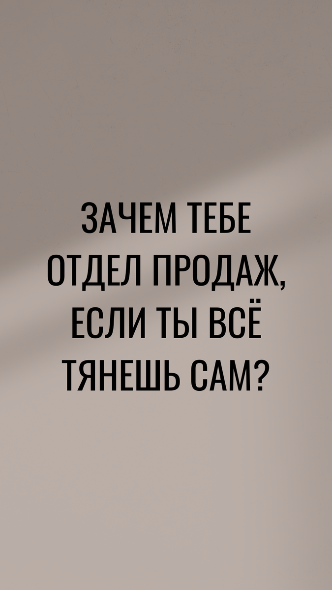 Зачем тебе отдел продаж, если ты всё тянешь сам?