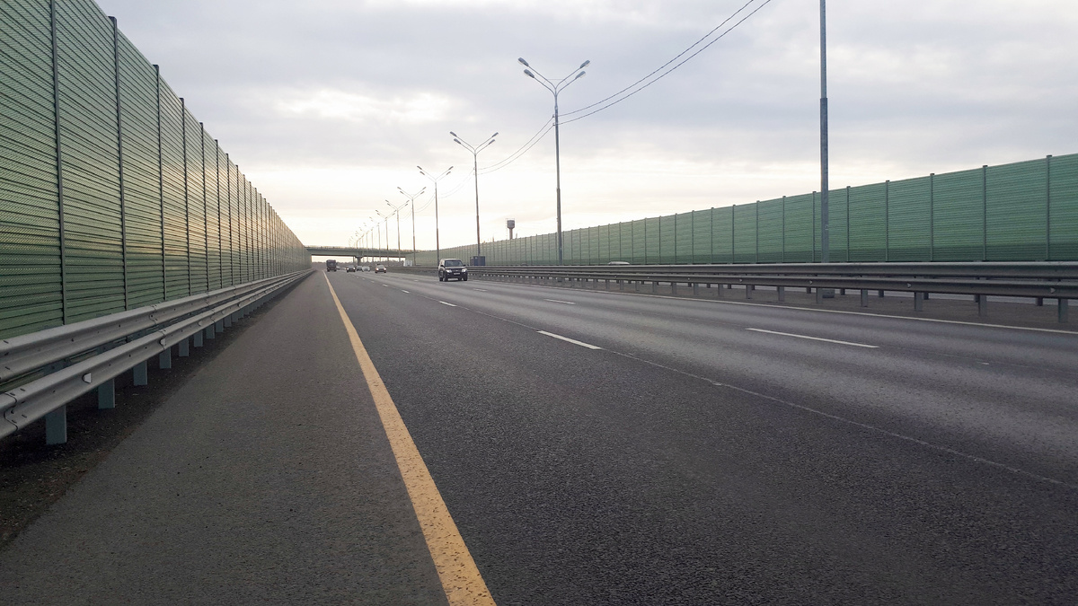 Вдоль дороги или лес, или пластиковая стена, как на заглавном фото. Ни одного строения, ни одного человека я не увидел, если не считать заправки. Мы пересекли несколько рек, таких как Волга, Ока, Сура, но их из легковой машины не видно, только перила мостов.