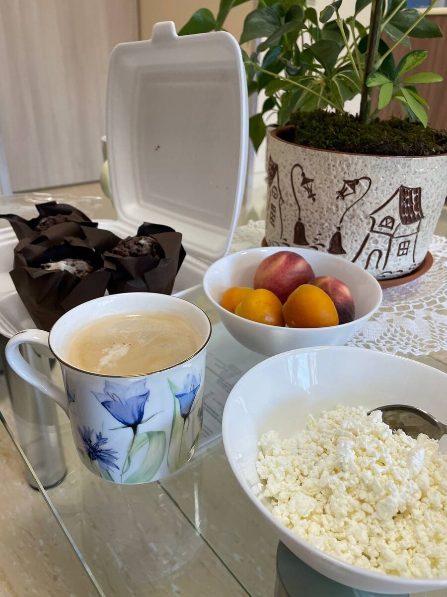 Мой сегодняшний рацион: на завтрак творог, абрикосы, шоколадный кексик; на обед фунчоза с курицей, болгарским перцем и баклажанами в соевом соусе; позже чай с шарлоткой, клубнички; на ужин паста с лососем, шпинатом и пармезаном (соус оказался слишком сладким для меня, хотелось немного «перчинки», аромата); дома чай с медовичком и 3 абрикоса (наконец-то пошли вкусные абрикосы) 🍑