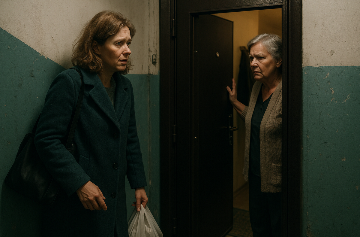 Я стояла на лестничной клетке с сумкой и пакетом лекарств, а в ушах звенело. Из щели в приоткрытой двери я видела знакомую прихожую: коврик с протёртым углом, табурет, мой веник в углу. Всё было как всегда - только ключ не подошёл. А теперь и свекровь говорила, будто я чужая.