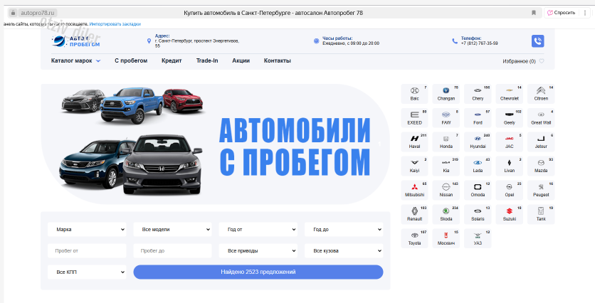 Автопробег 78 — это автосалон в Санкт-Петербурге. Точнее, это лендинг для сбора заявок. А обрабатываются они дилером из нашего черного списка. Больше интересного ищите в нашем обзоре. Автосалон на проспекте Энергетиков 55 в Санкт-Петербурге — это Автоплюс (Комфорт Авто), дилер из нашего черного списка. Точнее он раньше там находился. Теперь же по данному адресу на картах нет ни одного салона. Поэтому мы делаем вывод, что Автопробег 78 — это сайт для сбора заявок, а не реальный салон. А где эти заявки обрабатываются — большой вопрос. Сайт не вызывает доверия. Во-первых, нет сведений о наличии авто. Во-вторых, нет верифицированных отчетов о состоянии транспортных средств. В-третьих, указанные цены слишком низкие, что кажется подозрительным. В качестве владельца вымышленного автоцентра Автопробег 78 указано два юридических лица — ООО «Автодом» (ИНН 6166128253), которое является владельцем Автоплюса, и ООО "Сигма Сервис" (ИНН 7813201274). ООО Автодом: компания зарегистрирована в 2023 году,