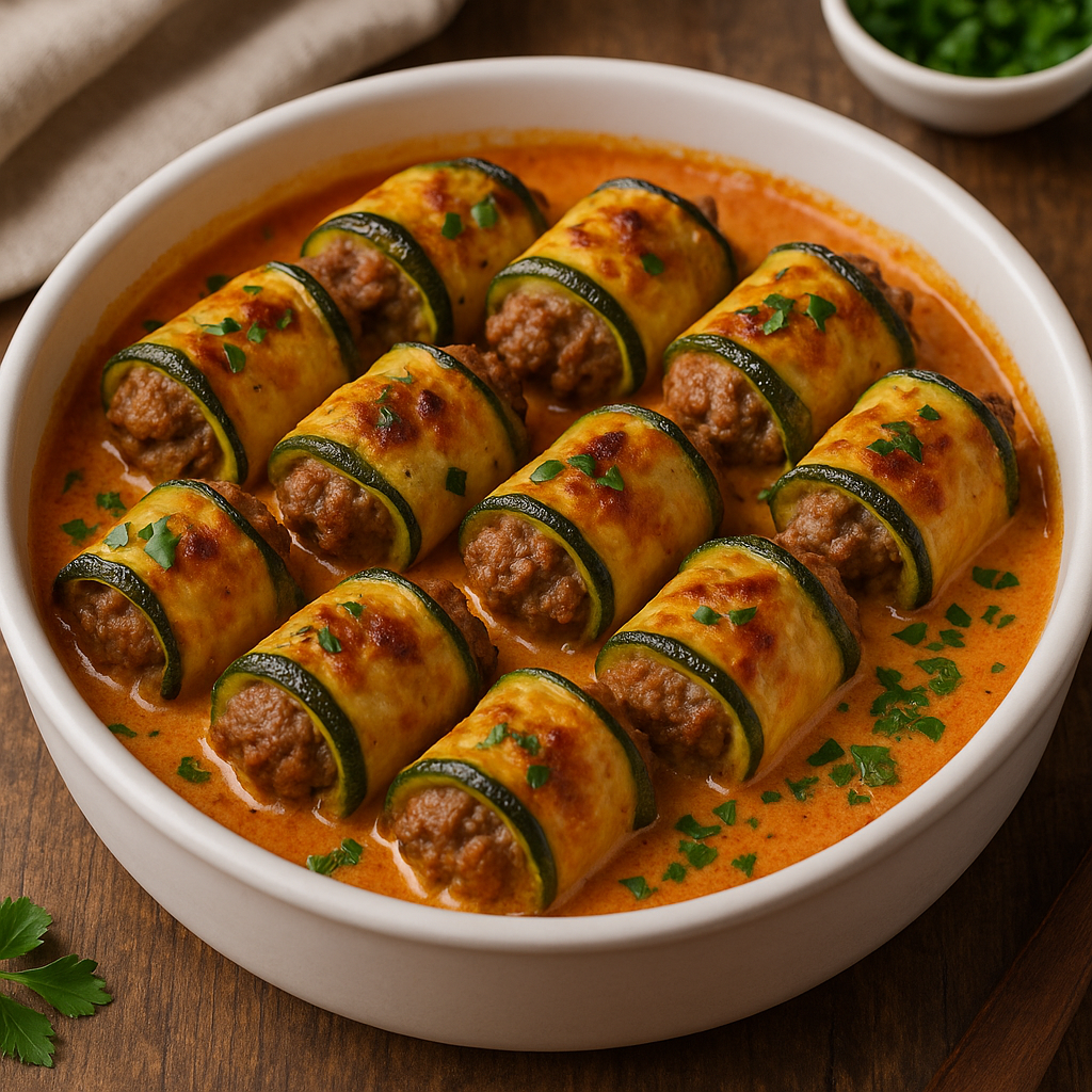 Если вы ищете новое, но при этом простое блюдо из сезонных овощей, которое понравится и взрослым, и детям — обязательно попробуйте рулетики из кабачков с говяжьим фаршем. Это сочное, ароматное и красивое блюдо станет достойной заменой надоевшим котлетам или рагу. К тому же, оно прекрасно подходит как для повседневного ужина, так и для праздничного стола. Ниже — подробный пошаговый рецепт, с которым справится даже начинающий кулинар. Тщательно вымойте кабачки, срежьте кончики. Нарежьте их тонкими длинными пластинами — это удобно делать с помощью овощечистки или ножа-мандолины. Толщина ломтика должна быть такой, чтобы он легко сгибался, но не рвался. Посолите кабачковые полоски и оставьте на 10–15 минут, чтобы они отдали лишнюю влагу и стали мягче. Затем аккуратно промокните бумажным полотенцем. В глубокой миске соедините говяжий фарш, мелко нарезанный лук, измельчённый чеснок, яйцо и (по желанию) панировочные сухари для плотности. Посолите и поперчите по вкусу. Хорошо перемешайте фар