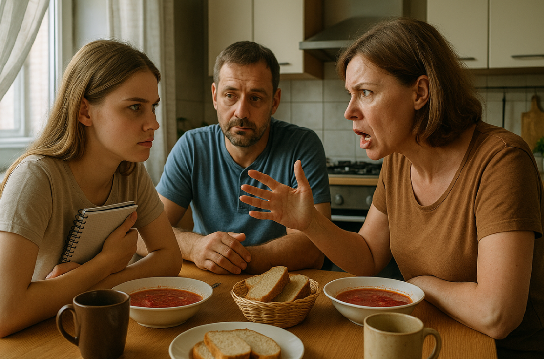 На кухне уже был накрыт стол: дымящийся борщ в глубоких тарелках, свежий хлеб, нарезанное сало – всё как любил отец, который должен был вернуться с работы с минуты на минуту. Мама подала мне ложку и села напротив.