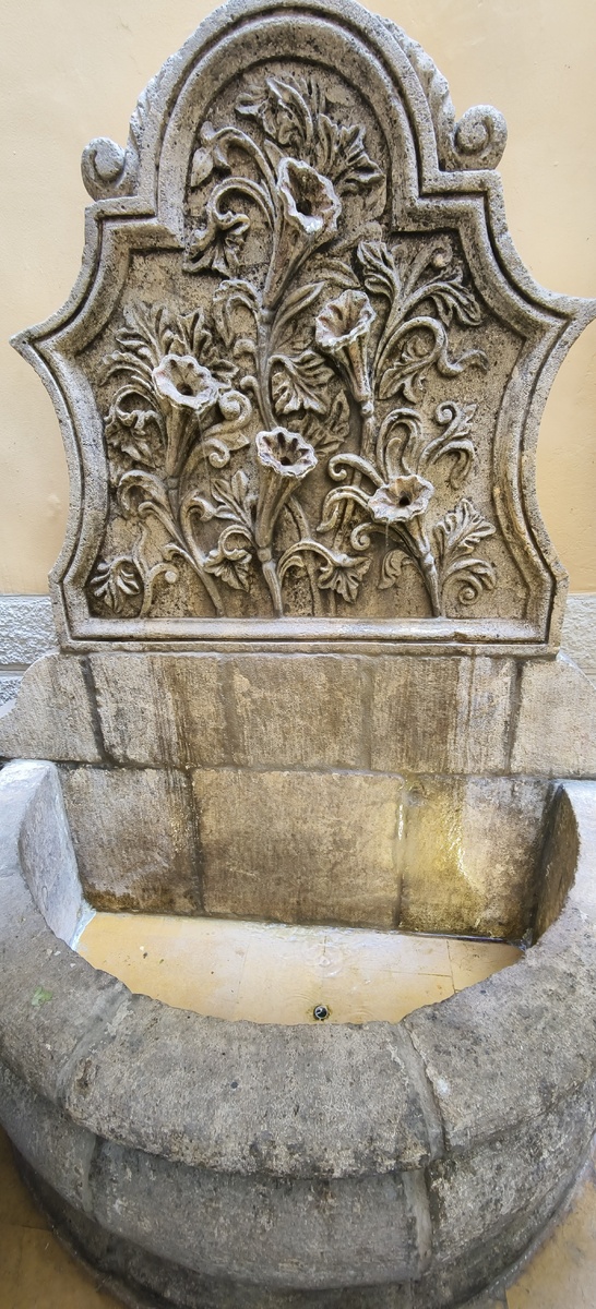 Мимо этого красивого ресторана я всегда проезжаю на машине. Я по той улице пешком редко хожу. На ней дальше в сторону севера есть музей и несколько красивых вилл конца 19 века, мы к ним сразу едем и около ресторана не останавливаемся. А вот вчера мы с коллегой по турцеху странным образом не попали туда, куда собирались. Нас позвали "во вторник", а когда мы приехали, сказали, что планировалось на среду. Так что в среду, то есть, сегодня, мы поедем туда, куда вчера хотели. А во вторник произвольным маршрутом шатались по городу. Я довольно много интересного нафотографировала и вам на днях покажу всё. Когда шли мимо ресторана, я предложила в него, наконец, зайти. Коллега в нем бывала, сказала, что цены очень высокие, а еда по ливанским меркам так себе. И это в стране, где отлично и вкусно кормят! Но помещение у ресторана довольно красивое. Если деньги "не проблема", то можно зайти на перекус. И понаслаждаться интерьерами. Смотрите: Это резной каменный фонтан у входа. Красивый. Арочные о