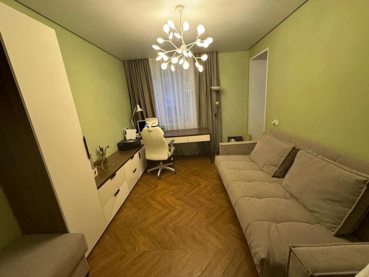 Классическое сочетание темного дерева и молочно-бежевого декора всегда будут выигрышным. В интерьере с весенним зеленым цветом создается гармоничное и уютное пространство, располагающее к спокойной работе и комфортному отдыху.