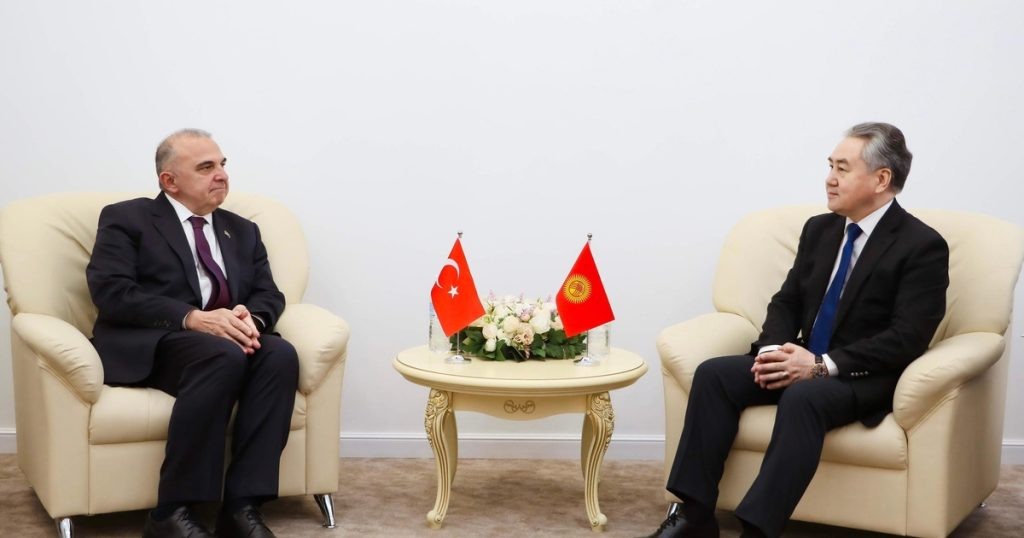 Бишкек, 11.06.25. Кыргызстандын тышкы иштер министри Жээнбек Кулубаев Түркиянын жаңы дайындалган элчиси Мекин Мустафа Кемаль Окем менен жолугушуп, саясий, соода-экономикалык жана башка тармактардагы кыргыз-түрк мамилелерин талкуулады. 🇰🇬 Кыргызстандын тышкы иштер министри Жээнбек Кулубаев Түркия Республикасынын Кыргызстандагы жаңы дайындалган элчиси Мекин Мустафа Кемаль Окемди кабыл алды. 🤝 Жолугушууда тараптар саясий, соода-экономикалык жана башка тармактардагы кыргыз-түрк мамилелеринин абалы жана келечеги тууралуу сүйлөшүштү. 📈 Кулубаев эки өлкө ортосундагы кызматташууну мындан ары өнүктүрүүнүн маанилүүлүгүн баса белгиледи, өзгөчө президент Режеп Тайип Эрдогандын 2024-жылы Кыргызстанга жасаган мамлекеттик сапарынын ийгиликтүү өтүшүн жана анын жыйынтыктары боюнча макулдашууларды ишке ашыруу зарылдыгын белгиледи. 🤝 Мекин Мустафа Кемаль Окем Бишкекке келгенден бери көрсөтүлгөн жылуу кабыл алуу жана колдоо үчүн ыраазычылыгын билдирди жана Кыргызстан менен Түркиянын ортосундагы мамил