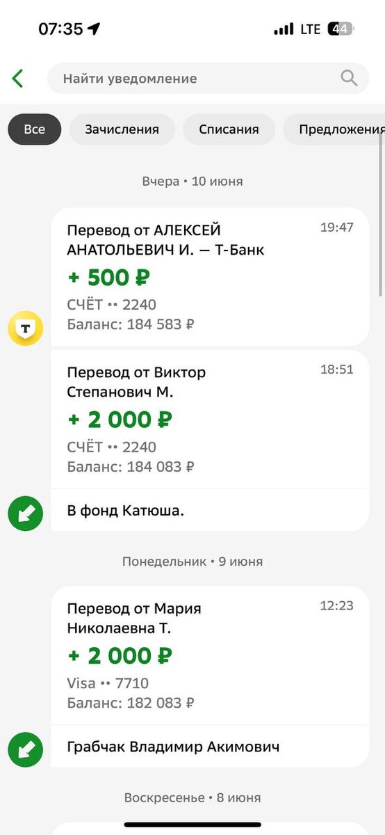 ОТЧЕТ О ПЕРЕВОДАХ ЗА 10.06.2025 г. 🔠 Виктор Степанович М + 2000 р 🔠 Алексей Анатольевич И + 500 р Спасибо большое Вам мои родные ❤️🙏👍 Спасибо за постоянную помощью и поддержку наших бойцов🙏 Нам друзья осталось собрать 61000 рублей и мы закроем 2 заявки: 1. 136 бригада ШТОРМ; 2. Артиллеристы 1438 полк.