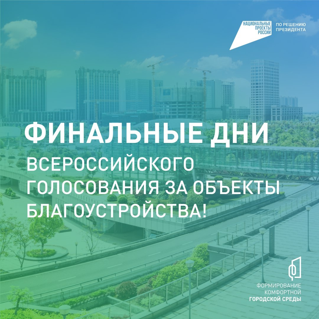 🔊Считанные дни остаются до завершения Всероссийского онлайн-голосования за объекты благоустройства