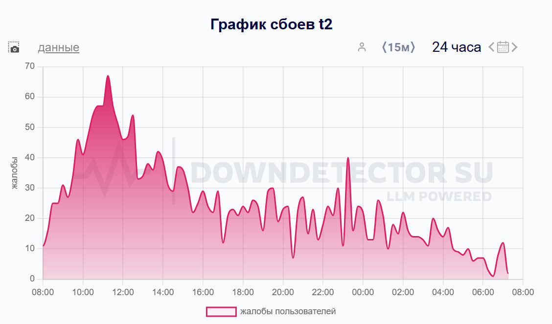 Количество жалоб сократилось в два раза. Сбой в работе мобильного интернета, начавшийся в пятницу, 6 июня, продолжается до сих пор, но уже с меньшей интенсивностью. Связь отсутствует уже пятый день. По данным downdetector, в Омской области в основном страдают абоненты Теле2. В час поступает в среднем по 22 жалобы, вчера их количество было около 50. Пользователи МТС продолжают активно испытывать трудности с выходом в интернет. Число жалоб сократилось, однако их все еще поступает значительное количество – час около 77. Напомним, что от отключения страдают не только обычные пользователи, но и бизнес. В такси тоже возникли проблемы, от чего цены на перевозки значительно повысились. Вчера некоторые омичи начали фиксировать восстановление мобильного интернета у абонентов оператора «Теле2». Ранее губернатор Виталий Хоценко заявил, что проблемы со связью и мобильным интернетом в Омской области вызваны вопросами безопасности. Мария Филимонова