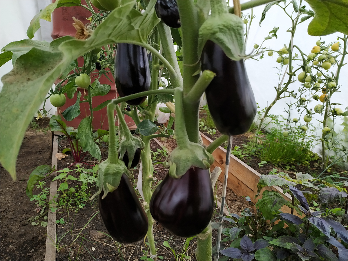 Уход за баклажанами в течение всего сезона требует внимания к поливу, подкормкам, защите от болезней и вредителей, а также формирования кустов. 1. Полив Первые 7–10 дней – умеренно, чтобы растения прижились. Далее – регулярно (2–3 раза в неделю), под корень, теплой водой (+20–25°C). В жару – чаще, но не допуская переувлажнения. Мульчирование: солома, торф или агроволокно для сохранения влаги. 2. Подкормки (каждые 2–3 недели) Через 2 недели после посадки: азотные удобрения (мочевина, коровяк 1:10, куриный помет 1:20). В период цветения фосфорно-калийные (суперфосфат + сульфат калия или зола). При формировании плодов калийные подкормки (калимагнезия, гумат калия). Дополнительно внекорневые подкормки бором и магнием (при слабом цветении). 3. Формирование куста Низкорослые сорта не требуют формирования. Высокорослые. Удаляют пасынки до первой развилки. Оставляют 2–3 сильных побега. Прищипывают верхушку при высоте 30–40 см (для лучшего ветвления). Удаляют лишние завязи (оставляют 5–8 плодов