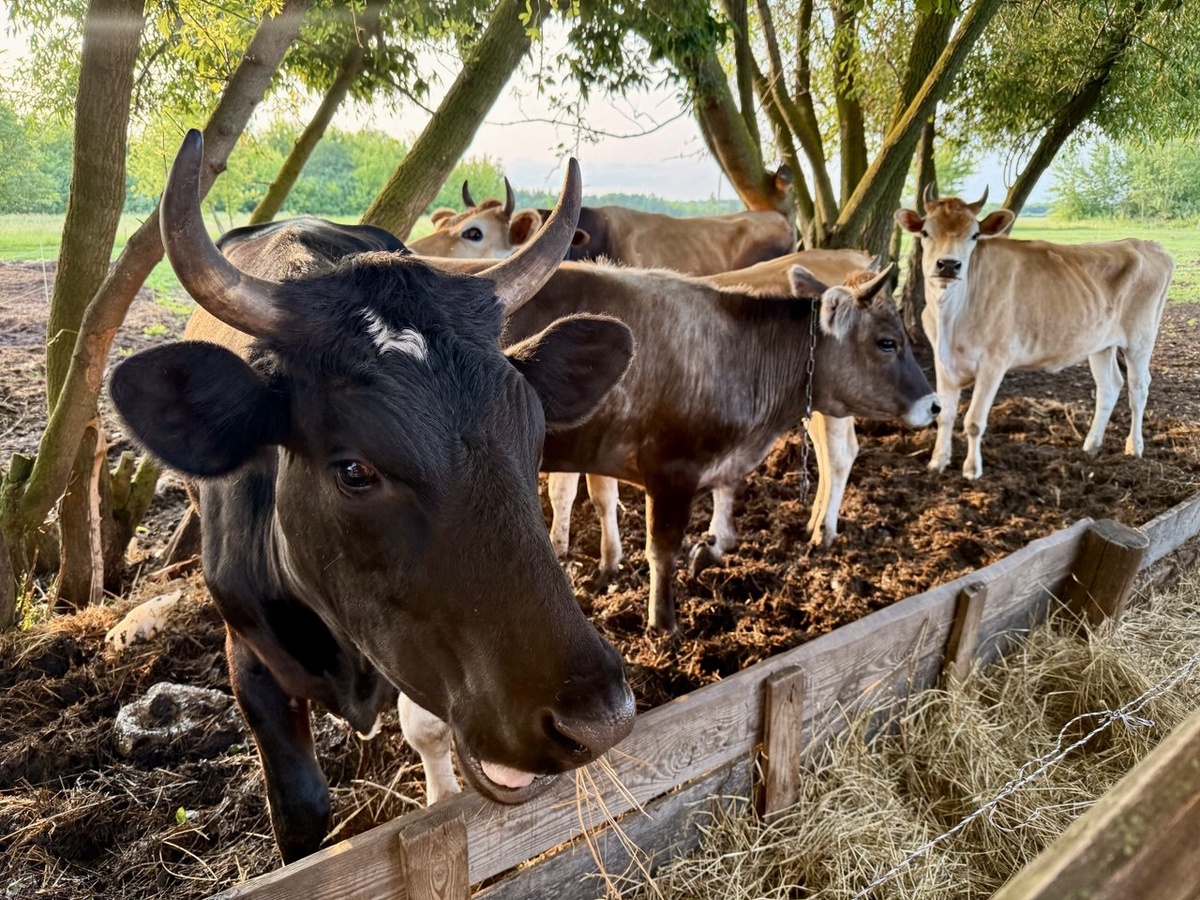 Знакомьтесь, тут и голштинка Красуля, и швицкая тёлочка Рябина, и две джерси — Калина и Веста. Тёлочки хорошо сформировались и выросли. Наташа их молоком вдоволь поила и сена не жалела. Любо-дорого на такую красоту смотреть. Стоимость этих красавиц, думаю, будет уместно обсуждать после осеменения, через месяц-полтора. Я обязательно опубликую пост, где оставлю контакты Наташи.