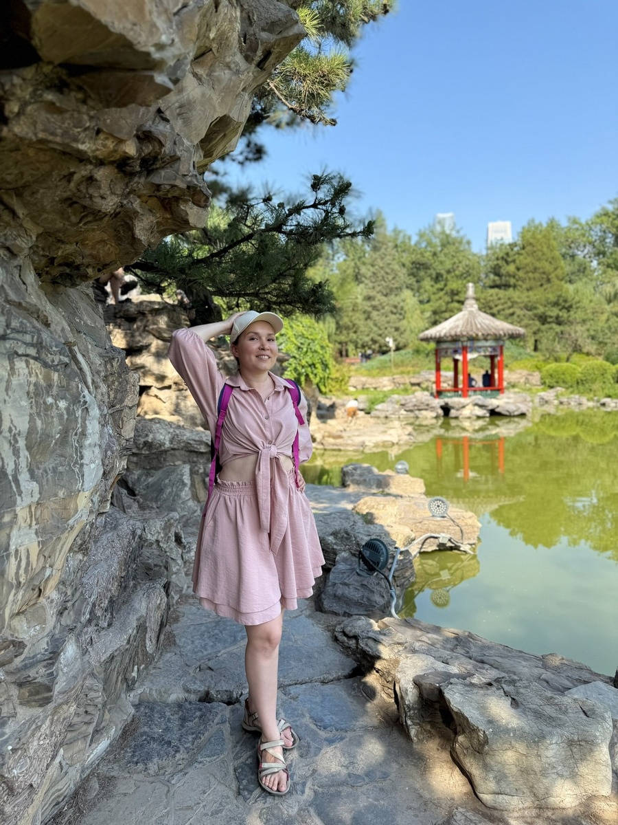 Островок спокойствия в центре столицы! Тихий парк с традиционным китайским садом. Спросили ИИ, куда можно бесплатно сходить в Пекине. И выбрали это место, потому что про него было написано: «нет туристов». Надо брать! На удивление, здесь реально мало людей. Кто-то бегает, кто-то играет в теннис или бадминтон, кто-то сидит на скамейке в тени деревьев. Сердце парка — пруд и каменный лабиринт. По мостикам и камням вы можете гулять, любуясь рыбками и черепашками. Пойдёшь вниз — набредёшь на гроты и пещеру. Пойдёшь вверх — извилистыми тропками и каменными ступеньками поднимешься на вершину скалы. Самое интересное, что всё это создано не природой, а человеком. Но здесь вы не увидите прямых углов и чётких линий, как в европейских садах. Всё максимально хаотично, как в естественной среде. Но при этом, всё так гармонично! Короче, всё по фэн-шуй🤣 Энергия ци свободно перетекает, и тебе там максимально приятно. Если будете в Пекине, настоятельно рекомендуем посетить это место. Называется Парк