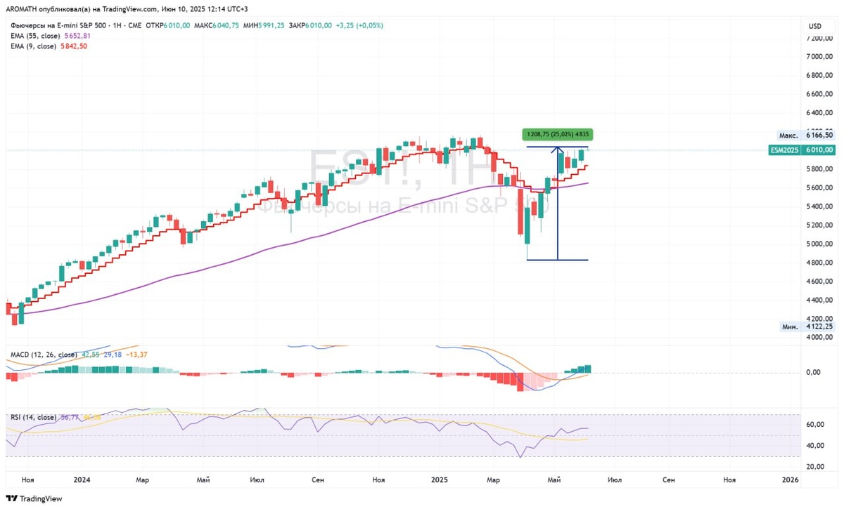 Страх исчез - риски выросли. Почему рынки на грани отката ⁉️ 📉 VIX рухнул с 45 до 16 - минус 63% за 9 недель, это рекорд. SP500 (ES1) на этом фоне вырос на +25%. Рынок резко "успокоился", слишком резко. ES1 может скорректироваться к 5315 - закрытие гэпа и стандарт по Фибоначчи. Но если бы всё было так просто - смысла в трейдинге бы не было. Поэтому быть адаптивным Agile 🦎- критично. 📉 Если в Штатах начнётся падение, нас тоже потащит сильнее вниз. Российский рынок нервный, суетиться не надо. Много на шортах не заработаешь, но и терять незачем. Или все-таки заработаем на шортах? 💡 Что дальше? - Или новый глава ФРС, = или снижение ставок, = или включают станок - не важно, всё это ведёт к одному: золото, серебро, крипта - взрыв дальше вверх. Нефть? Слаба. Но дёшева исторически - особенно к золоту, меди и BTC. Золото оторвалось от всего - типичный пузырь. Но если толпе нравится - пусть разгоняют. 🎣 Что делать? Сидим правильно. По российским акциям - спокойно, можно ехать на рыб