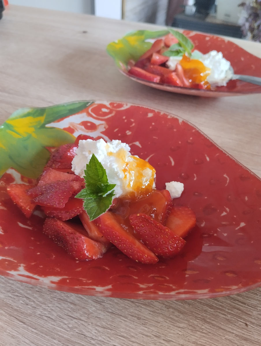 Что бы подсластить себе жизнь я приготовила к завтраку десерт из творога и клубники и украсила свежей мятой, за которой сходила в свой смешной огород прямо в тапках, не поленитесь ведь.🥳