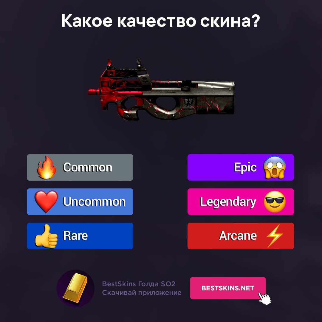 🎯 Какое качество у этого скина в Standoff 2? Проверь себя! BestSkins SO2 Common, Uncommon, Rare, Epic или что-то легендарное? 🤔 Выбери свой вариант и покажи, как ты шаришь в скинах S2! ⚠️ Без гугла — только хардкор 😎 Ставь реакцию за свой вариант: 🔥 ❤️ 👍 😱 😎 ⚡️ 📥 Скачать - https://bestskins.net