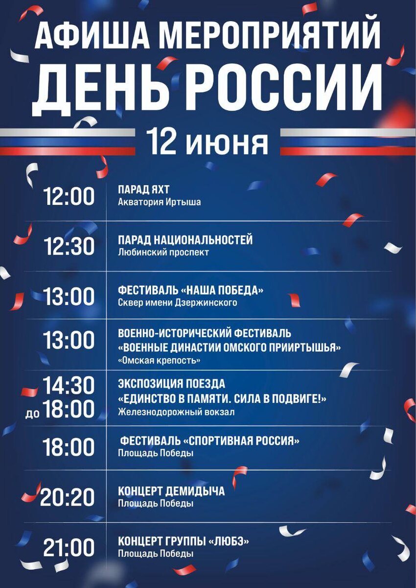 🇷🇺 Омичей ждет насыщенная программа в честь Дня России! 12 июня все желающие смогут окунуться в атмосферу дружбы народов на Параде национальностей, отправить весточку солдату СВО и сплести маскировочную сеть, увидеть силовое шоу от Михаила Шивлякова. Завершится вечер грандиозным концертом группы "ЛЮБЭ" на площади Победы. Подробная афиша в наших карточках. Сохраните и поделитесь с друзьями!