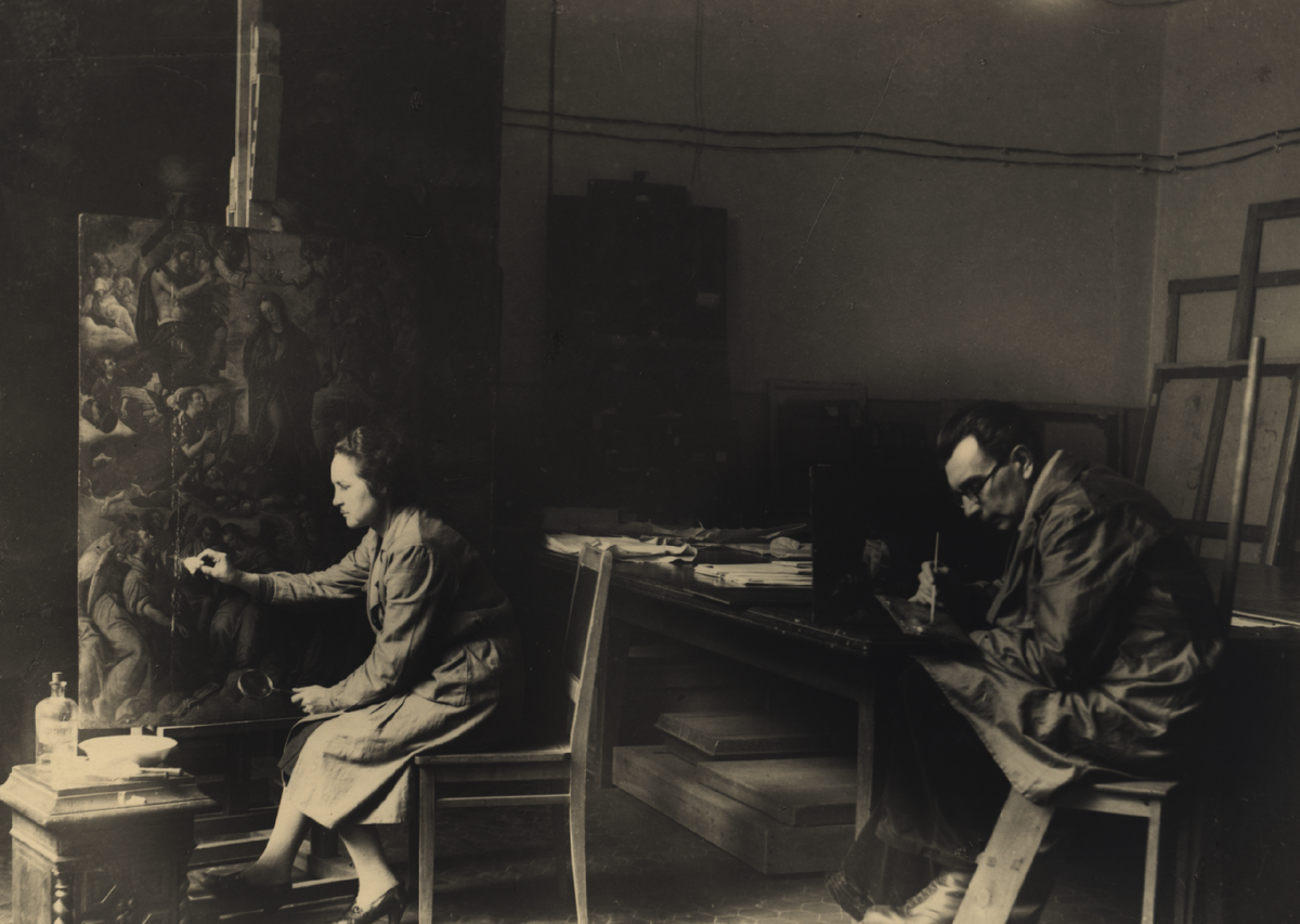 22 июня в истории нашей страны разделило время на «до» и «после». Люди оставили ту привычную жизнь ради того, чтобы будущие поколения вошли в будущее с наследием прошлых эпох. В этот день мы вспомним тех, кто был на другом фронте — на страже искусства и культуры. Эти герои увековечены на выставке «Подвиг музея» к 80-летию Победы в Великой Отечественной войне. С началом войны сотрудников в музее с каждым днём становилось всё меньше: уходили на фронт по призыву и добровольцами, эвакуировались семьями. На 1 августа 1941 года в музее осталось всего 70 человек. Самоотверженный труд 70 работников сохранил для будущих поколений сокровища мирового искусства — это была борьба не менее важная, чем прямое столкновение. Чтобы остаться на «службе» в музее и защитить культурное наследие от уничтожения научные сотрудники оформлялись на другие должности. Реставратор Елизавета Болотникова перевелась кассиром в бухгалтерию. Пожарным стала старший научный сотрудник античного отдела Нина Лосева. Экскурсов
